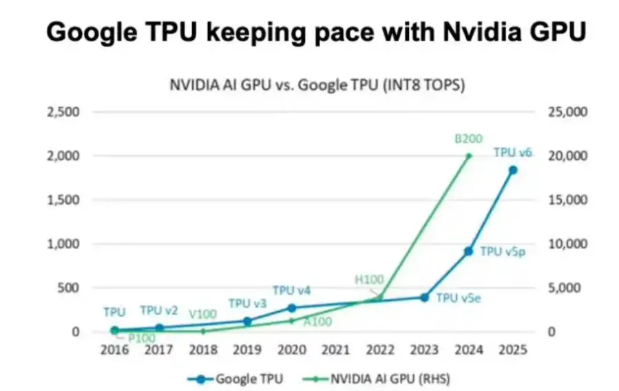 谷歌大模型升级、TPU 产量预期增长再度催化市场预期,光通信芯片可能面临短缺,2026年具备涨价逻辑,光模块行情有望延续。谷歌发布新一代AI 大模型 Gemini 3,性能取得亮眼表现,Gemini 3 模型主要在 TPU 芯片上训练,表现已接近甚至超越 OpenAI 的 ChatGPT。TPU 是谷歌的专用集成电路(ASIC)晶片,专为加速机器学习工作负载而设计,尽管 TPU 在灵活性上不及英伟达的GPU 芯片,但其性能已能够媲美英伟达 B200 芯片,TPU v7 Ironwood 单芯片 FP8 算力达4614 TFLOPS,略超英伟达B200,9216颗芯片集群算力达42.5 ExaFLOPS。同时 TPU 具备较强的成本优势,在此背景之下,谷歌 TPU 产量或将于2026-2027年迎来增长。