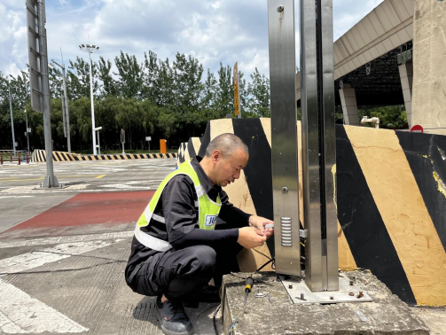 蓬溪入口治超三抓摄像机故障,为了尽快恢复图片完整性指标,成南公司机电维护队员赵伟烽冒着下午直晒高温,对故障进行处置。