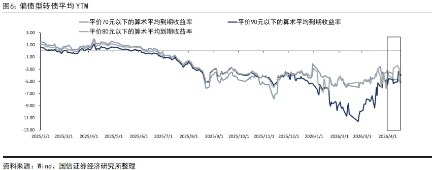 偏债型转债中平价在70元以下的转债平均YTM为-5.12%,位于2010年以来/2021年以来的1%/3%分位值。