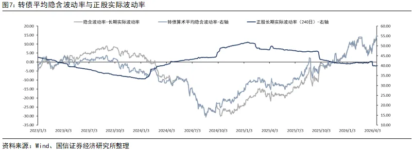全部转债的平均隐含波动率为54.88%,位于2010年以来/2021年以来的98%%/100%分位值。转债隐含波动率与正股长期实际波动率差额为14.94%,位于2010年以来/2021年以来的99%/100%分位值。