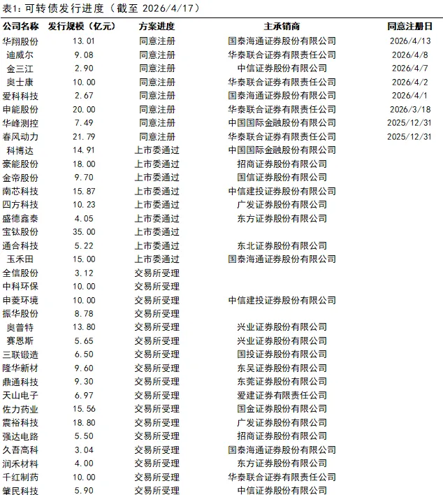 截至4月17日的公告来看,下周(2026/4/20-2026/4/24)暂无转债公告发行和上市;