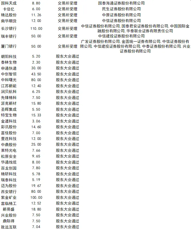 上周(2026/4/13-2026/4/17),交易所同意注册的有华翔股份1家,上市委通过的有科博达1家,交易所受理的有全信股份、中科环保2家,股东大会通过的企业有朝阳科技、泰林生物2家,董事会预案的有汇通控股、五洲交通2家。