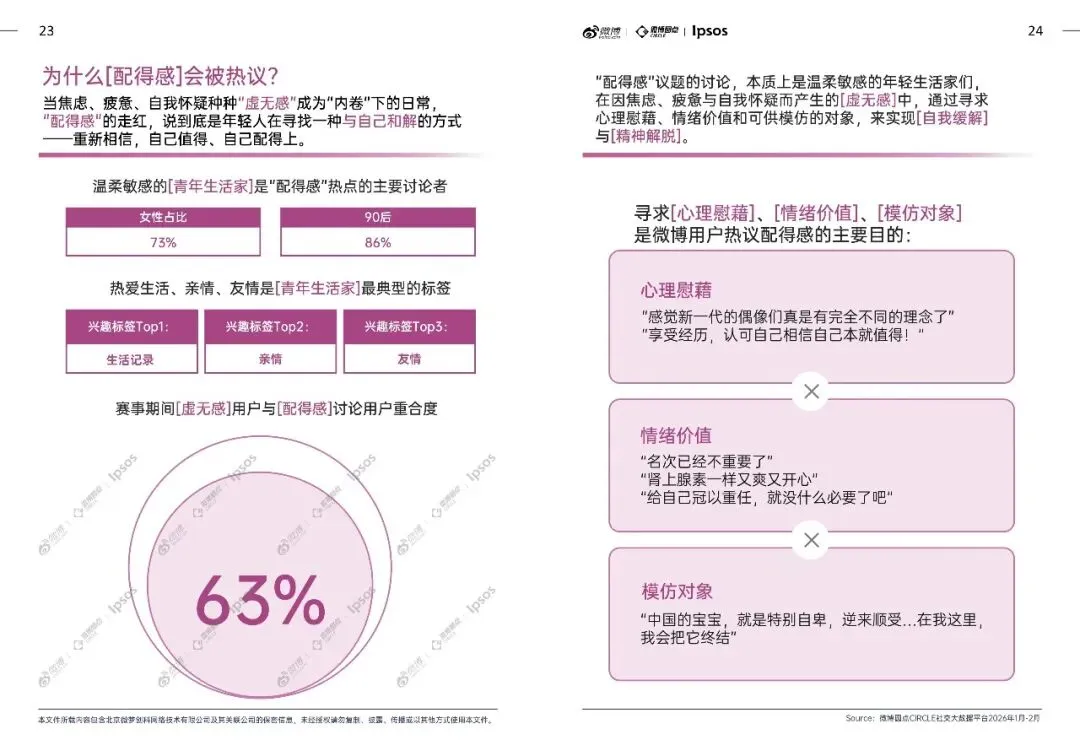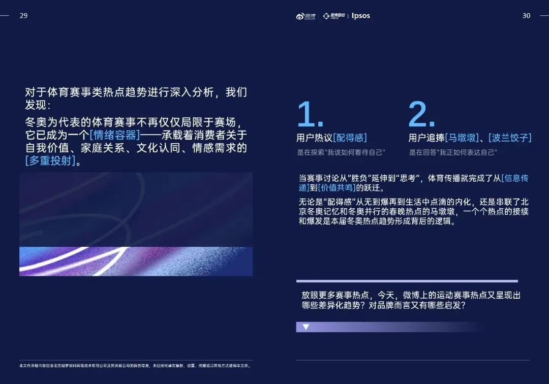 体育赛事成为参与式社交热点,消费者不仅关注赛果,更深入介入运动员故事与情感轨迹。微博作为体育赛事热点讨论的主阵地,通过热搜、话题等方式放大热点价值,满足用户情感共鸣、信息知情和社交参与需求。