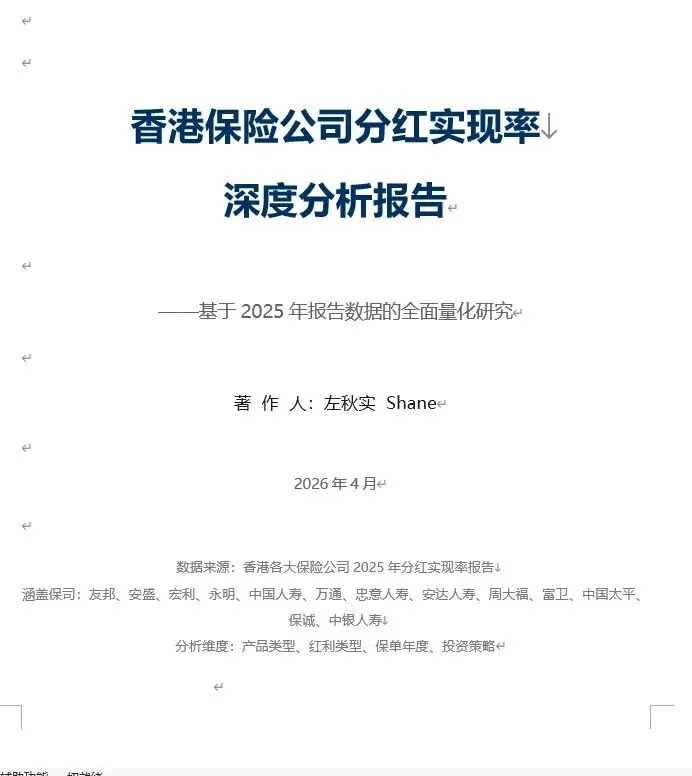 ~基于2025香港保险各家公司分红实现率分析包括不同产品类型、红利类型、保单年度、投资策略下的大量数据列表分析【1.5万字】