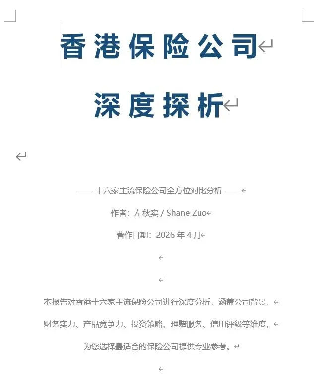 ~香港十六家主流保险公司进行深度分析,涵盖公司背景、财务实力、产品竞争力、投资策略、理赔服务、信用评级等维度【3万字】