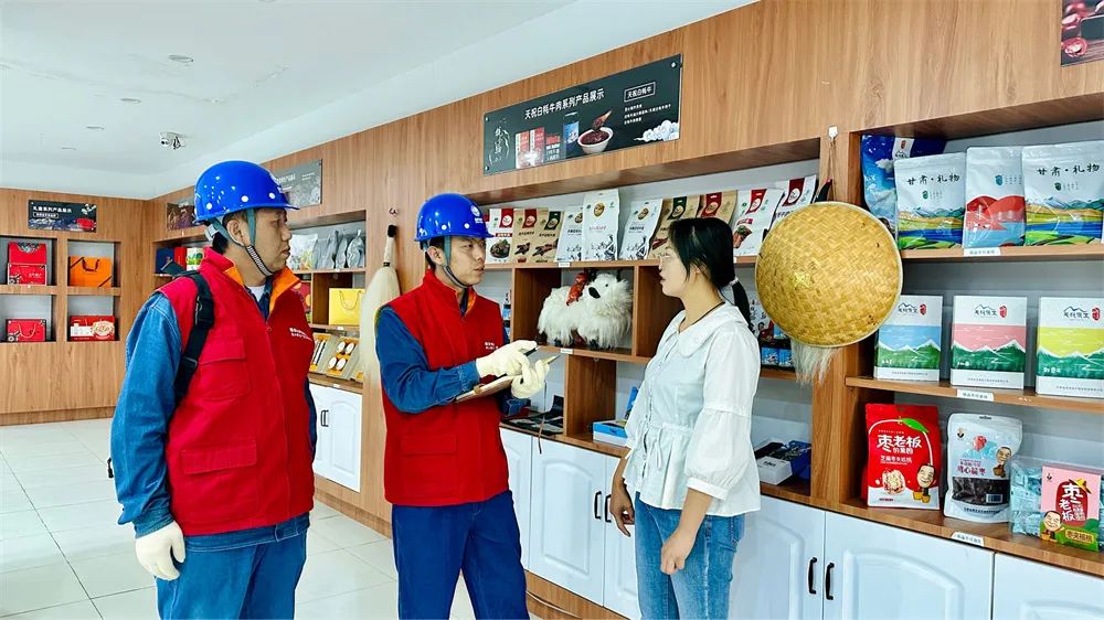 当天上午,国网武威供电公司员工蒋春宏、张强,来到甘肃金农商电子商务科技有限公司了解客户用电需求,同时对周边配电线路及变压器进行安全用电检查,以“贴心服务”为电商企业发展保驾护航。