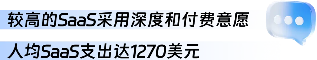 美国 SaaS 市场的核心结构特征在于企业极高的 SaaS 工具采用成熟度与付费意愿,以及随之而来的高人均支出。