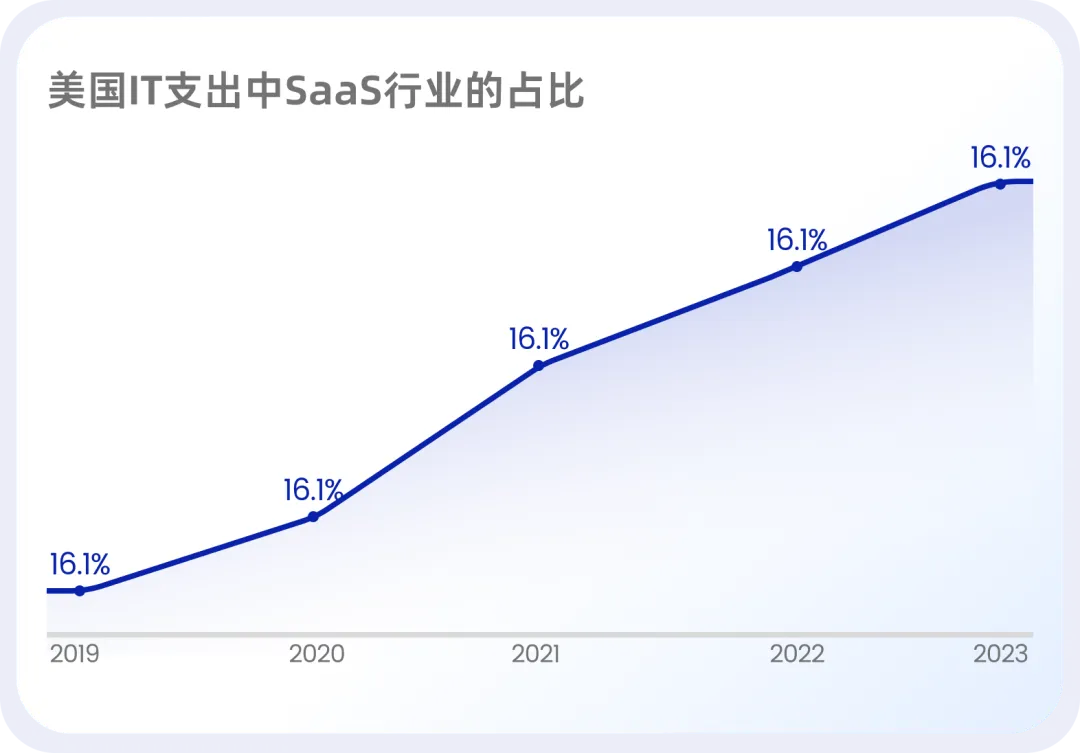 这一差距的持续扩大,反映出美国企业在 SaaS 投入上的强烈意愿和较高成熟度。