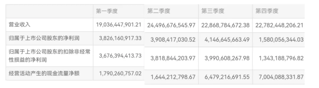 此外,其年报中还有一个“暗雷”——Q4净利润仅15.8亿元,扣非净利润13.4亿元环比都暴跌近60%多。扣非表面看全年数据亮眼,但最新季度的经营节奏明显放缓,这可能给了资金充分的短期出逃理由。