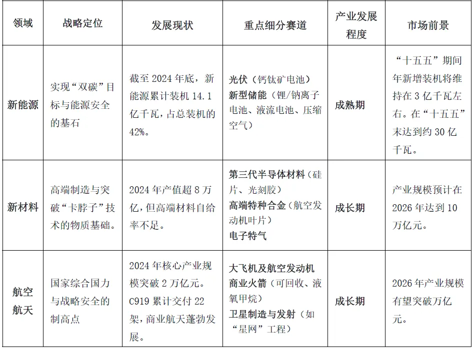 新兴支柱产业: 万亿级市场的“核心驱动力”,如新能源、新材料、低空经济 。
