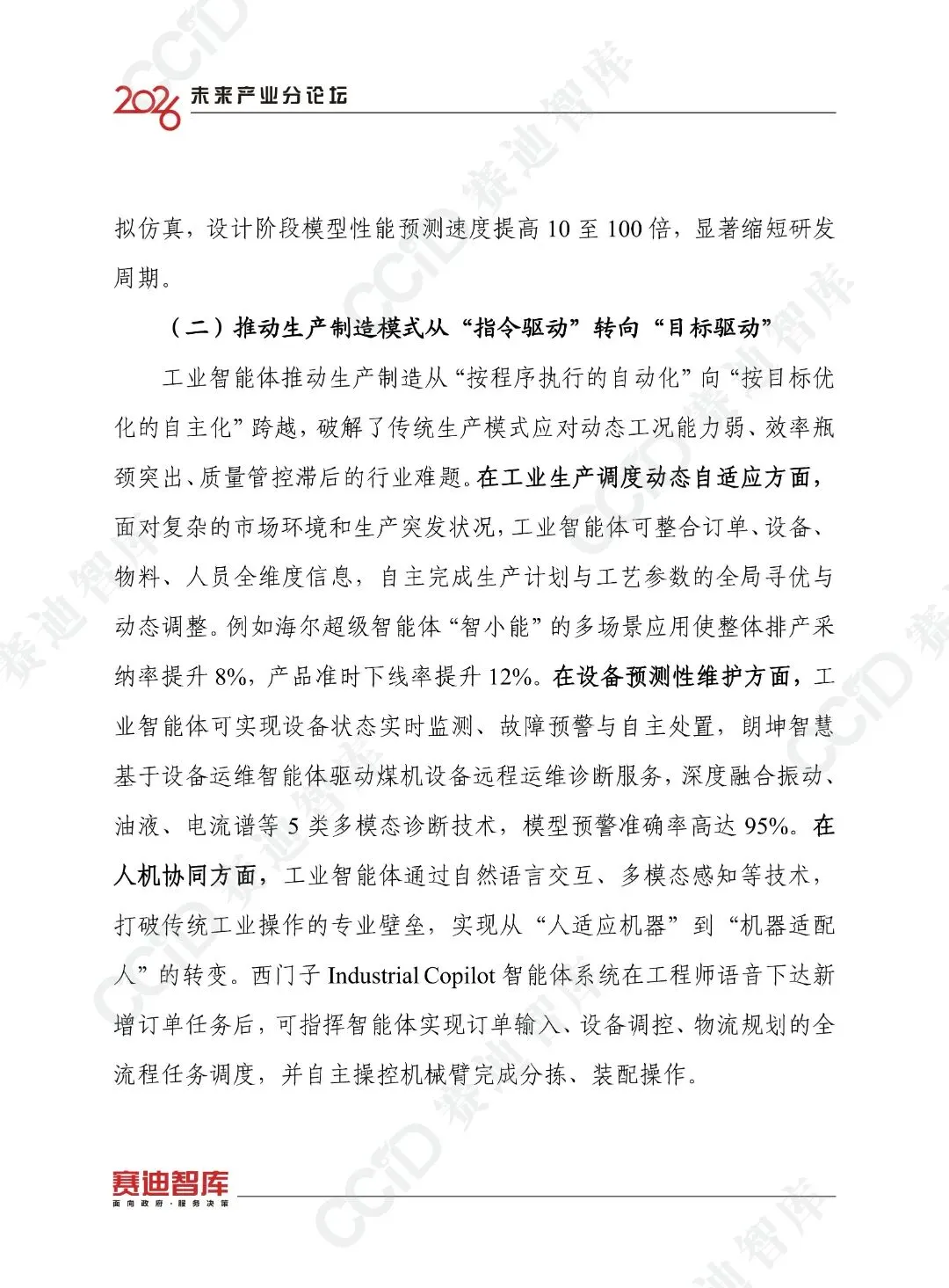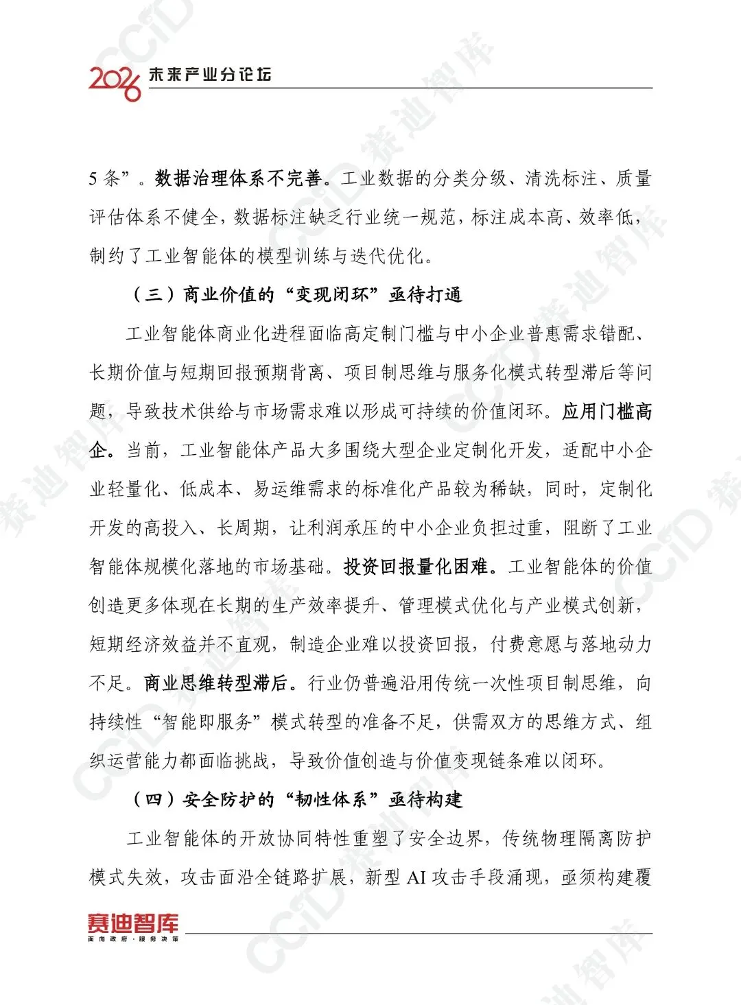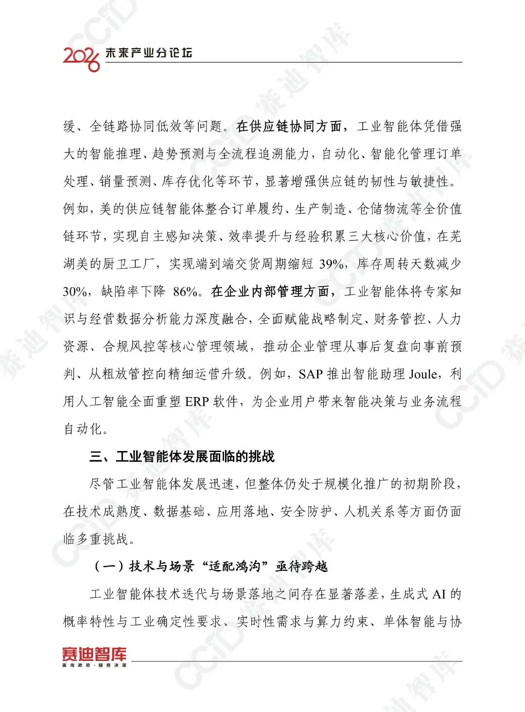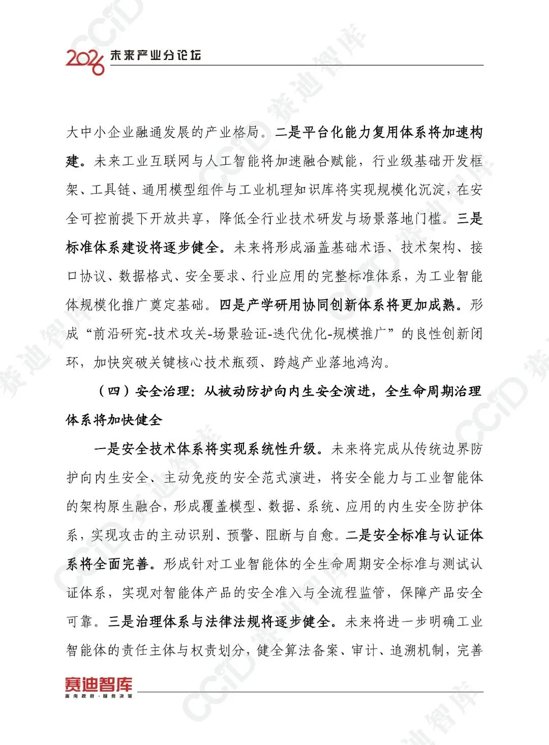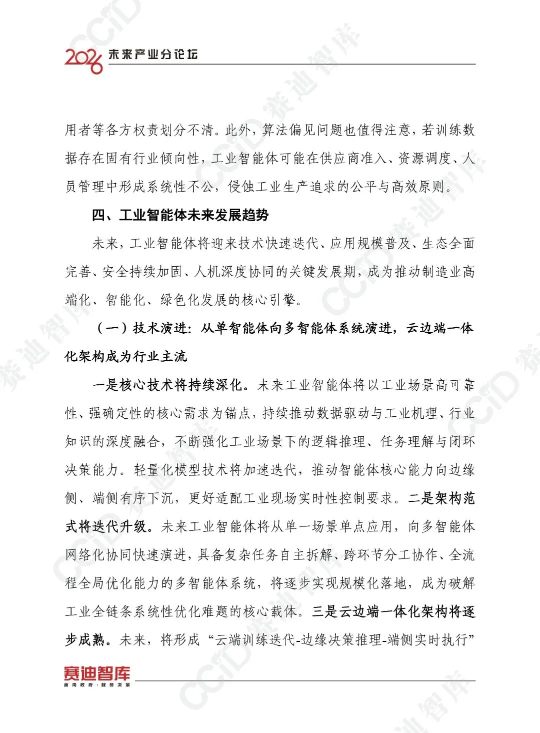 未来,工业智能体将向多智能体系统演进,云边端一体化架构将成为主流,应用将从单点试点向规模化普及演进,普惠化将成为重要方向,产业生态将从分散布局向开放融通演进,安全将从被动防护向内生安全演进,人机关系将从人机替代向人机共生演进。