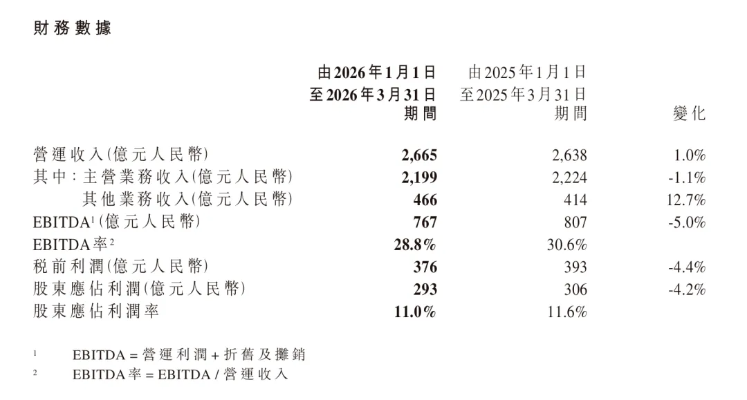 营收结构的分化是本季财报最核心的观察点之一。主营业务收入2199亿元,同比下滑1.1%;而其他业务收入达到466亿元,同比大幅增长12.7%,占整体营收比重已接近17.5%。