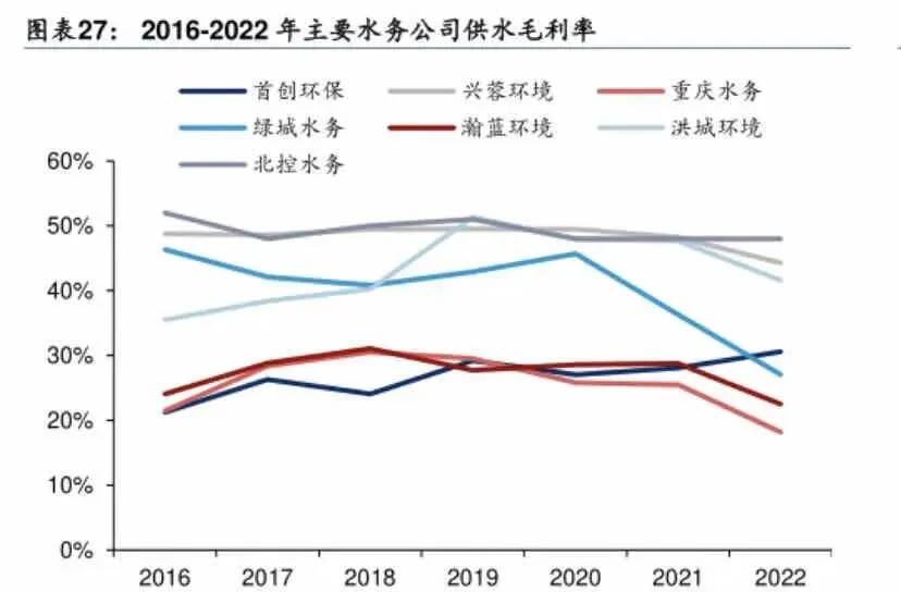 很多水务上市公司在当地有独家特许经营权,比如重庆水务,垄断了重庆的供水和污水处理市场。没有竞争,价格和成本就能在合规范围内自己把控,收入稳定,成本可控,利润率自然远超6%-8%的基准水平。