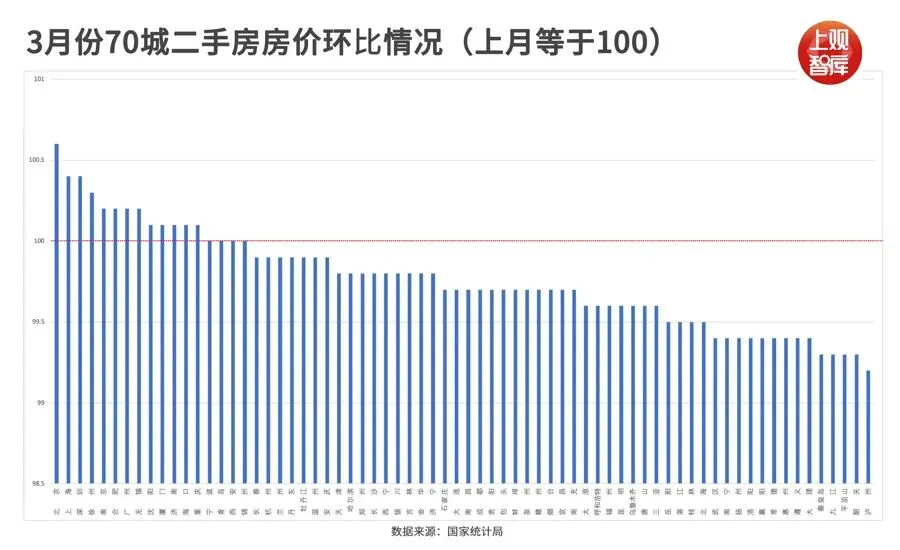 从国家统计局最新发布的70城数据来看,2月份春节淡季期间,上海成为唯二二手房环比上涨的城市,3月份再次实现环比上升,达成二连涨。