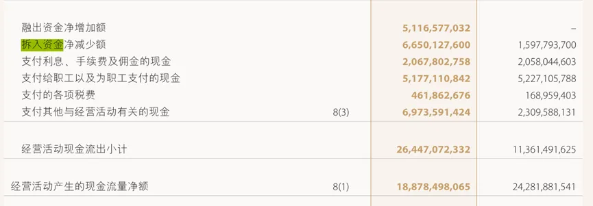 读者可能会疑惑:合报里有拆入资金流入,母公司报表里却没有,反而有流出?