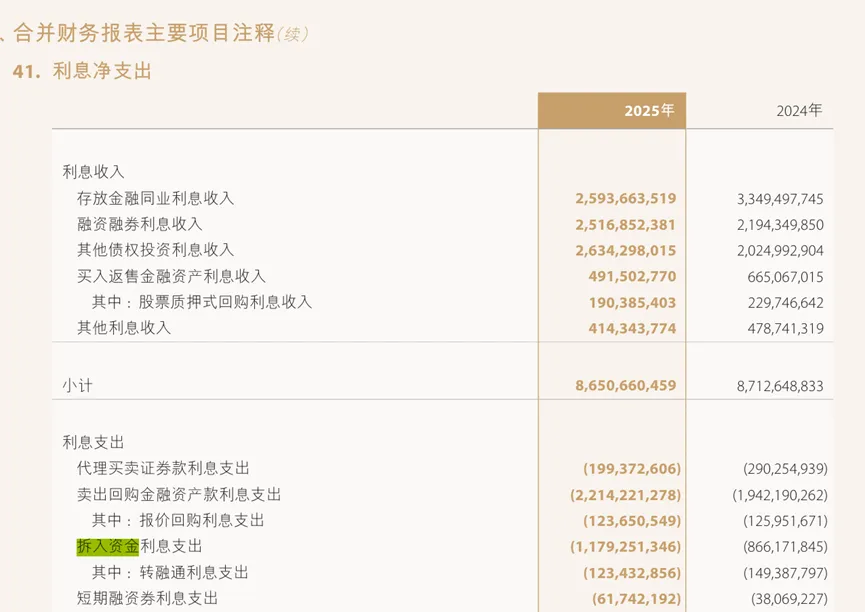 有读者发现?拆入资金附注中“计提利息”仅9,500万元,而利润表中“拆入资金利息支出”高达11.79亿元,相差约11倍。这是不是数据问题?