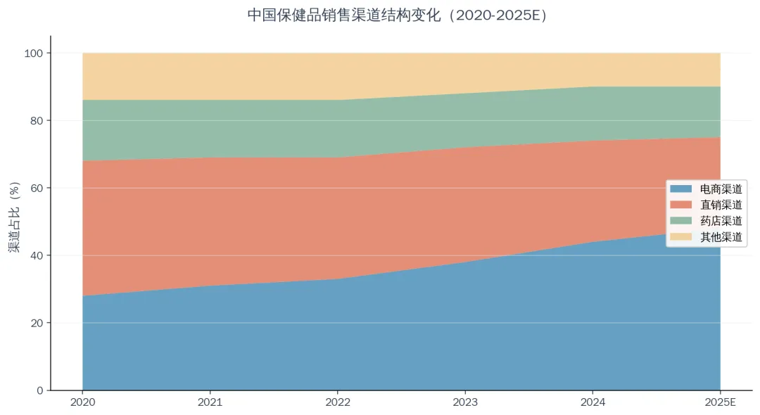 图6:中国保健品销售渠道结构变化(2020-2025E) 数据来源:中商产业研究院、头豹研究院