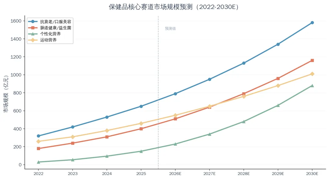 图8:保健品核心赛道市场规模预测(2022-2030E) 数据来源:多机构综合估算