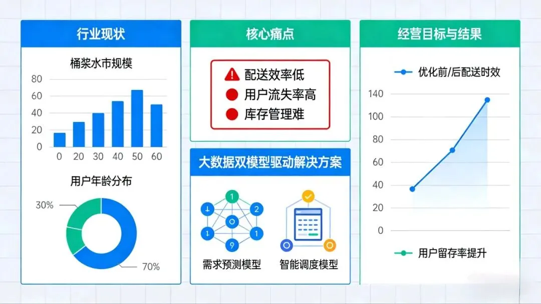 无论是电商平台的用户价格敏感度预测模型,还是桶装水行业的客户需求识别模型,其本质都是将商业问题转化为数学问题。通过概率论、数理统计、回归分析等专业知识,构建科学的模型框架,确保数据分析结果的准确性与可靠性。