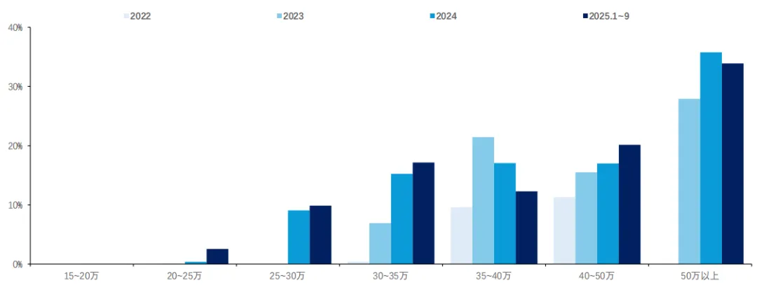 2022 年:23.8 万套 2025 年:127.2 万套,3 年 CAGR 75% 渗透率:从 1.2% → 5.4% 价格带:20~25 万车型开始大规模搭载