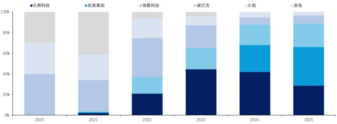 2020 年以前:大陆、威巴克垄断。2025 年:中国厂商全面赢麻。