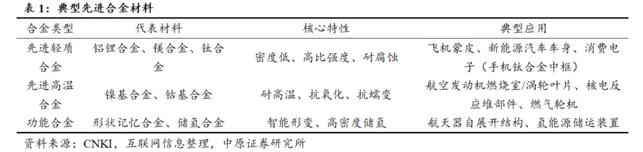 合金材料指由特定工艺将金属与其他金属或非金属熔合而成的具有金属特性的材料。通过不同元素的组合,合金兼具各成分的优点,可显著提升或改变单一金属的性能,广泛应用于工业、科技及日常生活领域。根据主要元素构成,可分为钛合金、镍基合金、铝合金、钨合金、镁合金、铅锌合金等多种品类。根据材料性质和应用领域,可以分为轻质合金、硬质合金、高温合金和高熵合金等。与单一金属相比,通过元素间的电子交互作用和晶体结构优化设计,合金材料在保持金属基体特性的同时,可大幅提高材料综合性能。随着我国航空航天、新能源汽车、人形机器人等新领域的持续推进,制造业特别是新质生产力领域对先进合金材料的需求正在快速提升。