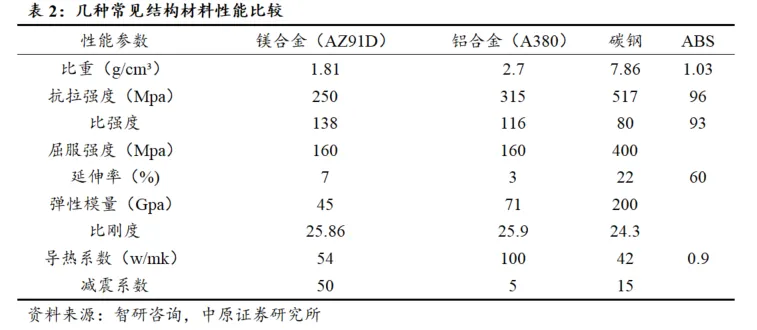 2)智能化新增部件需求,释放镁合金独特材料优势。
