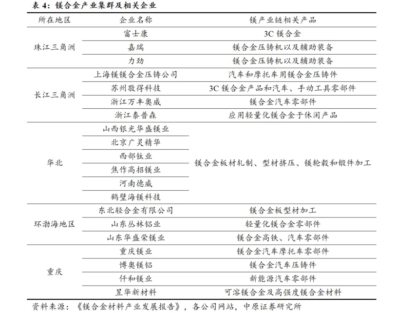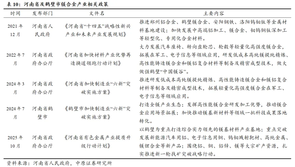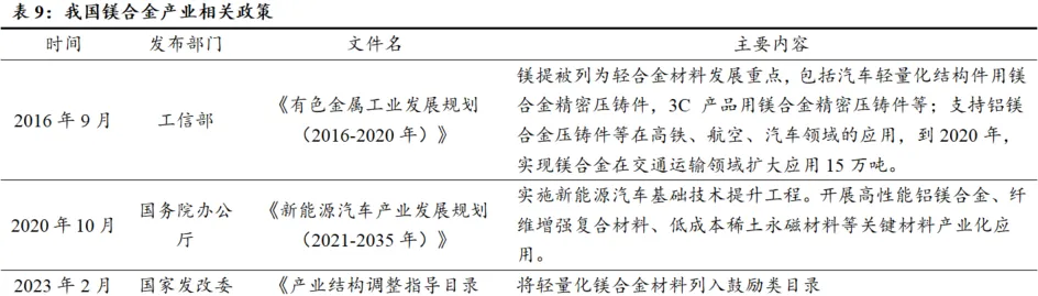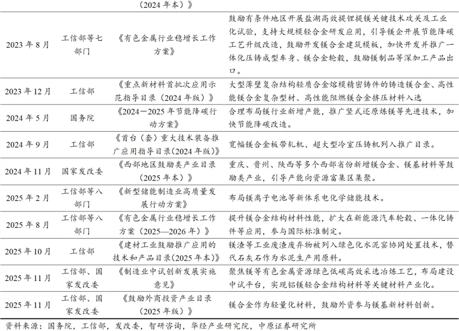 从国家战略层面来看,近年来国家多部委及行业协会持续出台系统性政策,全方位引导中国镁产业链向高端化、绿色化、集群化方向升级,加速高端镁合金制造的产业化与规模化发展。