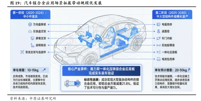 1)电动化重构减重刚需,打开镁合金核心应用空间。