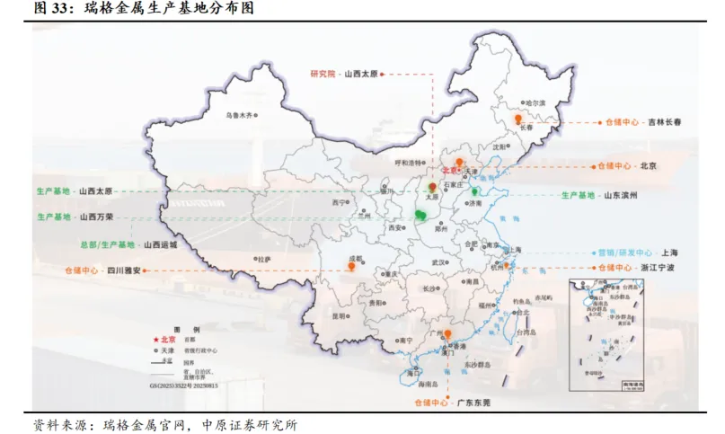 山西瑞格金属成立于1998年,总部坐落于山西省运城市闻喜县,是一家专注于镁、铝金属材料研发、生产与销售的高新技术企业。公司自创立以来,构建了以山西闻喜生产基地为核心、上海子公司为运营支撑的一体化业务布局,形成了覆盖研发、生产、销售全链条的完整产业体系,专注为全球客户提供高品质镁铝材料解决方案。公司产品涵盖原生镁锭、镁合金、铝合金、铝基中间合金及镁铝深加工产品等,凭借优异的产品性能,广泛应用于航空航天、汽车制造、3C电子、轨道交通等战略性新兴领域,是宝马、丰田、奥迪、大疆、奇瑞、理想、江淮的合格供应商。目前公司拥有总设计产能66万吨的规模化生产体系,其中包含:原生镁锭3万吨、镁合金10万吨、铝合金43万吨、镁铝合金深加工产品10万吨。2024年公司实现营业收入17.64亿元,营业利润4425.61万元。