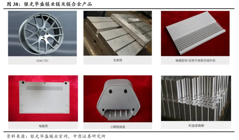 公司成立于1988年,前身为地方国营金属镁厂,经1996年、2000年两次改制组建集团,2008年注册成立山西银光华盛镁业股份有限公司。公司是中国镁业协会副会长单位、山西省镁铝精深加工产业链链主企业,下总资产13亿元,拥有年产原镁6.5万吨、镁合金3万吨、镁深加工产品5万吨的产能。目前公司已形成三大系列的产品:一是锻压汽车轮毂、各种压铸汽车零部件产品。二是高铁、地铁用镁合金精密挤压型材等轨道交通轻量化产品。三是电脑板、手机中框等3C高端系列产品。