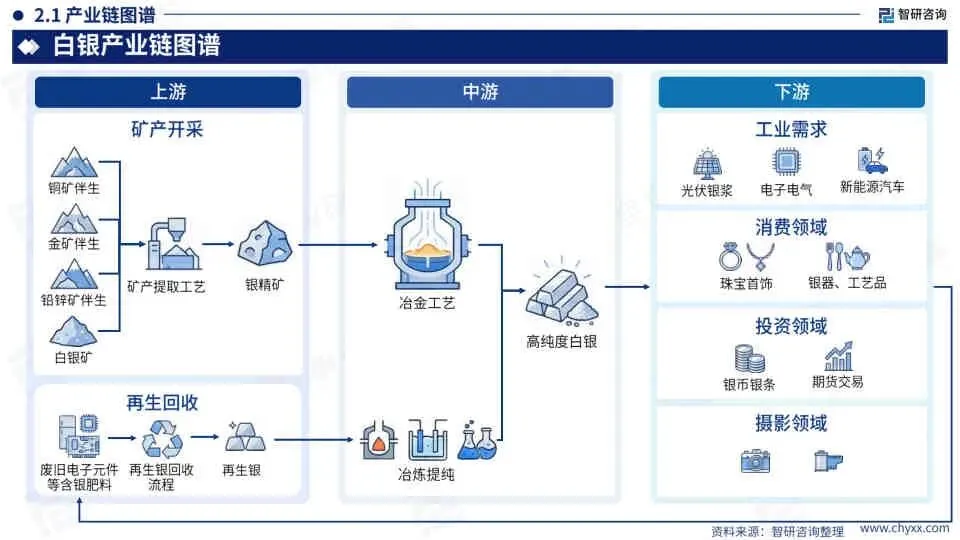 - 回收利用:再生银成为重要补充,工业废料回收占比达60%,随着循环经济推进,回收体系将不断完善。
