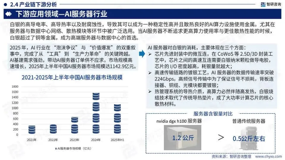 - AI算力:AI服务器追求高导电与散热,芯片封装、连接器镀银及散热材料大幅增加白银需求。