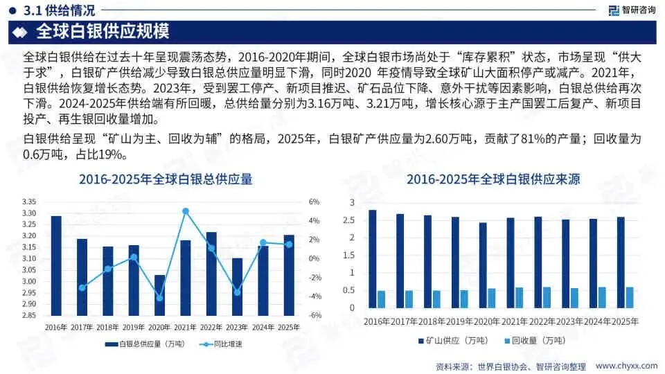 - 供给格局:白银供给高度依赖铜、铅、锌等主金属的开采节奏。2025年全球白银市场出现约3660吨的结构性缺口,为连续第五年供不应求。