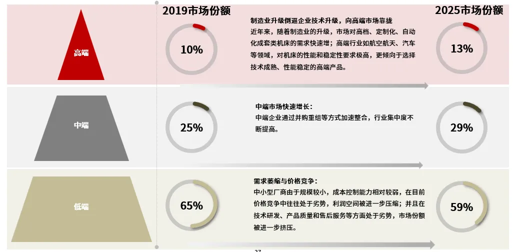 机床市场竞争加剧,需求萎缩与价格竞争,高端市场需求增长,低端市场优胜劣汰,中端市场快速增长。