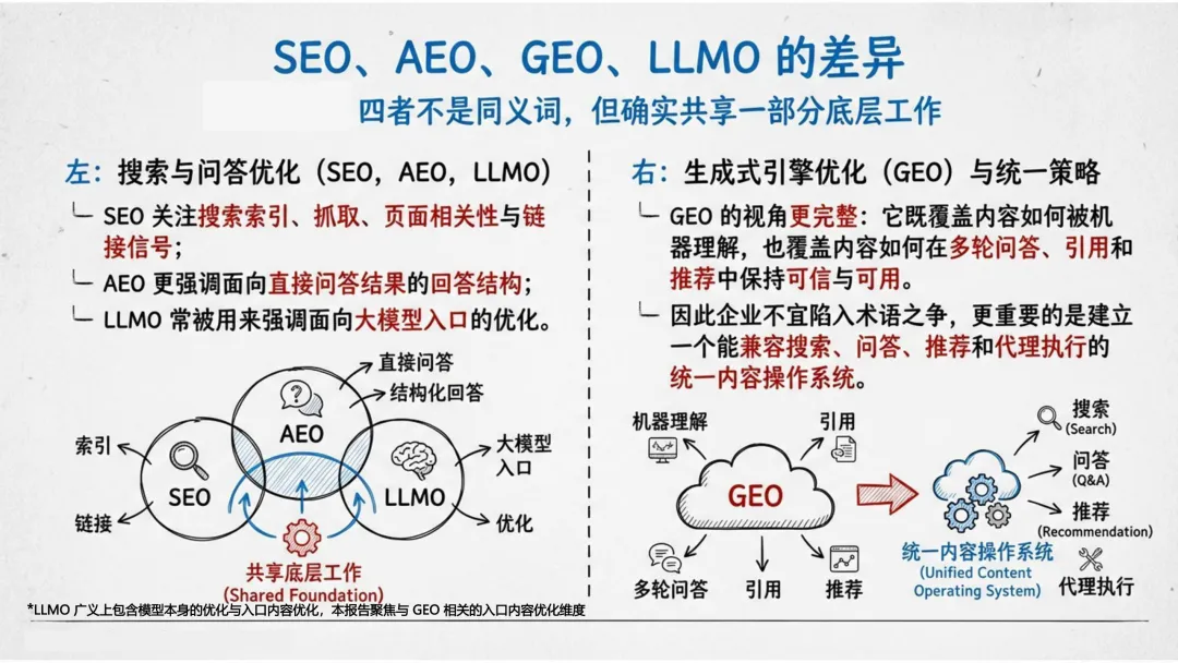 报告用一句话总结了这场转变:GEO的写作对象不是算法,而是模型在压缩答案时最愿意安全复用的语义单元。