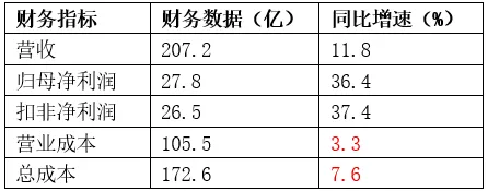 从上表可知,2026年一季度公司利润同比增速是营收同比增速的3倍以上,主要原因是成本增速远低于营收增速。