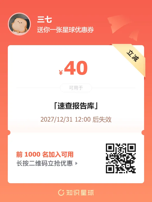 需要下载完整版报告的朋友,可以扫下方优惠券付费成为会员,(现在加入仅需26/年)200000+份报告,随意下载,不受限制,(支持PC端/APP),星球保持每日更新。客服微信:SCBGK666