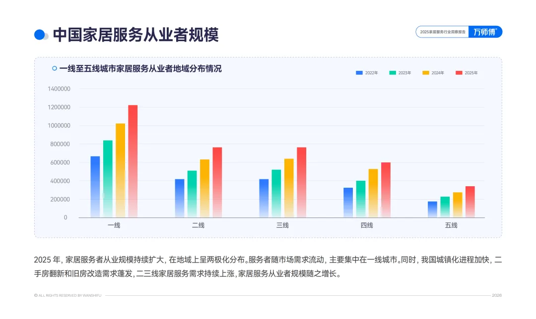 行业最明显的痛点是服务质量参差不齐,近四成用户都有相关感受,再加上售后保障不到位、服务价格不透明,影响着整体消费体验。未来要破局,就得靠数字化和AI技术提升服务匹配与执行效率,推进服务标准化、品质化建设,严格审核服务人员资质、规范价格体系,同时聚焦以旧换新、适老化改造等场景,打造全品类一站式服务模式。