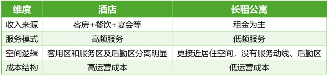 酒店与公寓在底层运营逻辑上存在本质差异。酒店依赖多元收入结构,包括餐饮、宴会与会议等,而公寓则以客房租金为核心收入来源。这种差异不仅体现在收入端,也体现在空间设计、人员配置与服务体系上。