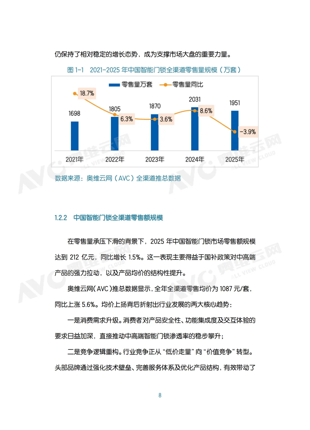 2025年市场量降价升,核心是中高端产品升级带动均价结构性上涨。2026年增长动力转向存量房替换、老旧小区改造,叠加AI智能锁高端化拉动。行业整体从规模扩张转向价值提升,AI赋能与适老化需求成为稳定增长的关键支撑。