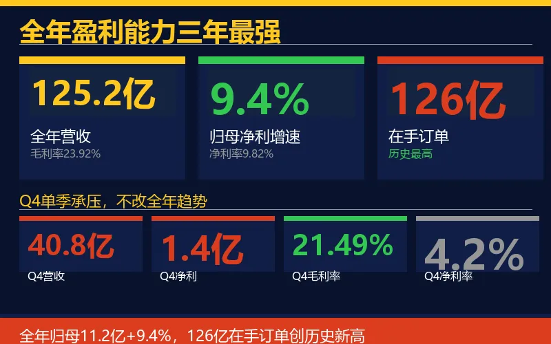 ▲ 全年营收125.2亿,归母净利11.2亿+9.4%,126亿在手订单创历史新高