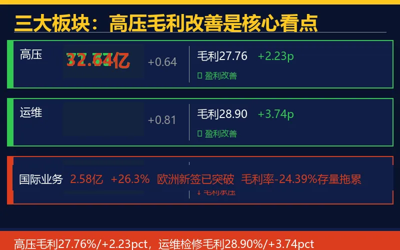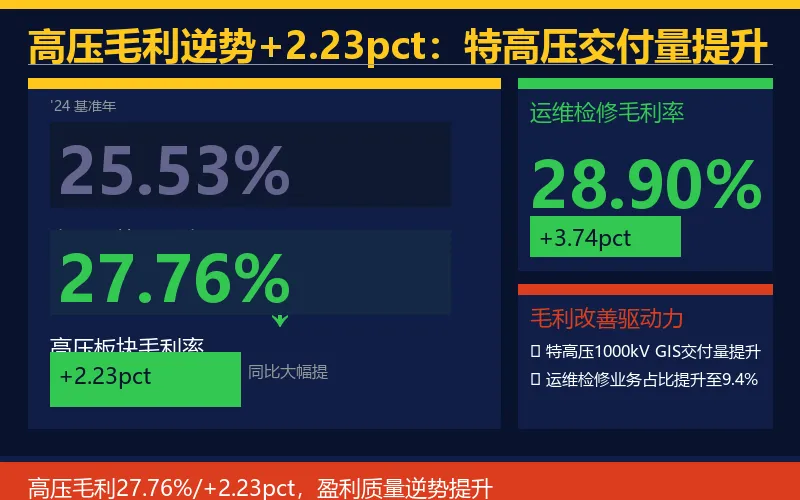 ▲ 高压毛利27.76%/+2.23pct,运维检修28.90%/+3.74pct,盈利能力逆势增强