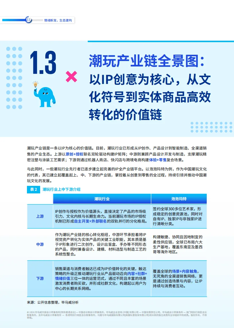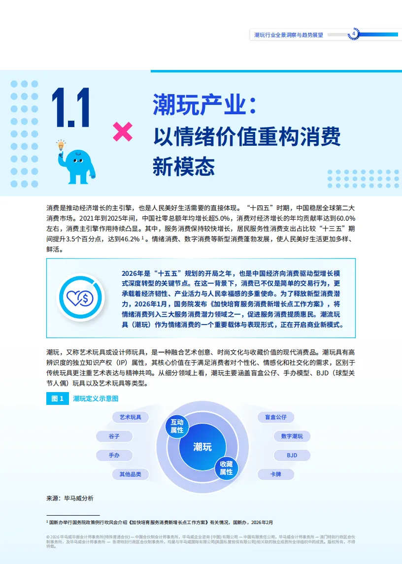 毕马威2026年发布的潮玩行业报告显示,中国潮玩产业已从小众亚文化迈入大众情绪消费主流赛道,依托情绪价值驱动、政策支持与技术创新,形成完整产业生态,正朝着规模化、规范化、全球化方向发展。