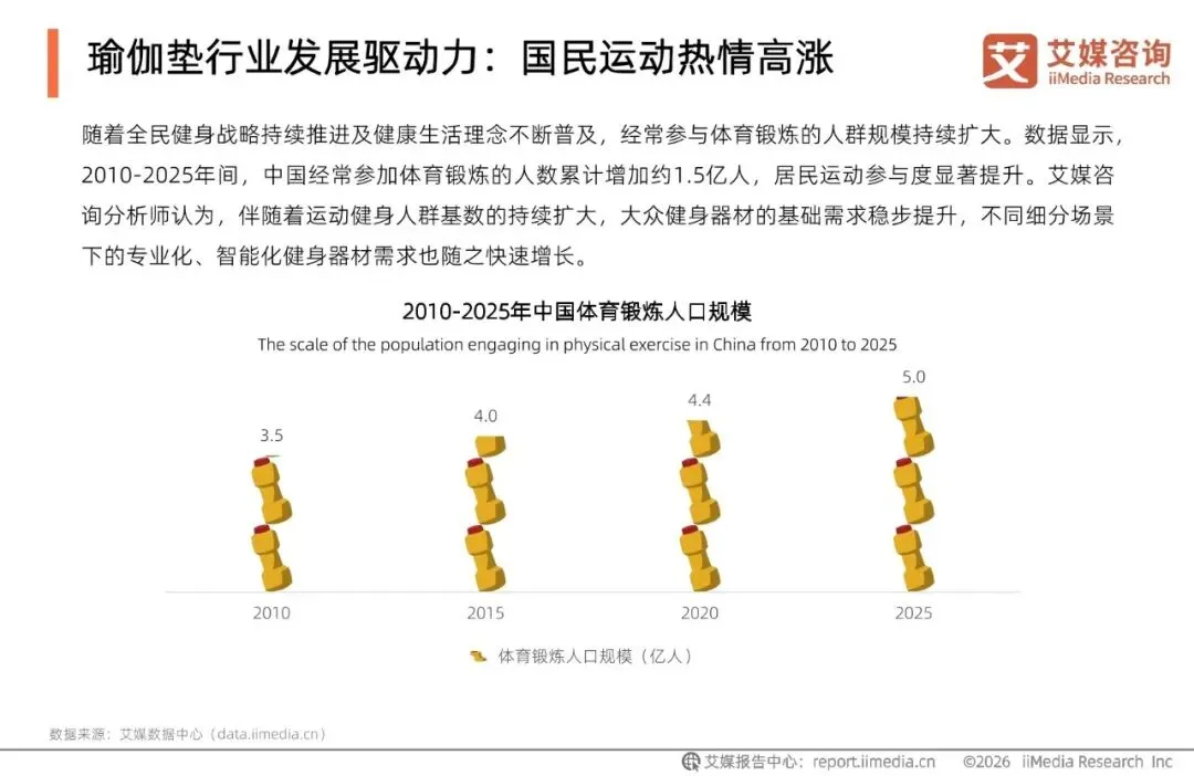 随着全民健身理念深化,中国健身消费市场形成多层次需求体系。瑜伽垫作为健身瑜伽运动装备,需采用环保材料制成,具备防滑、缓冲等性能。大型体育赛事与全民运动热情升温共同推动瑜伽用品需求攀升,瑜伽垫子品类进入快速发展通道。