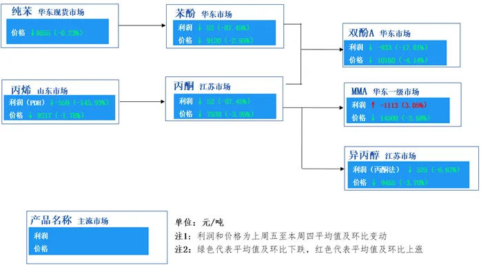 酚酮产业链周度分析:产业链全线下跌,行业利润回撤明显