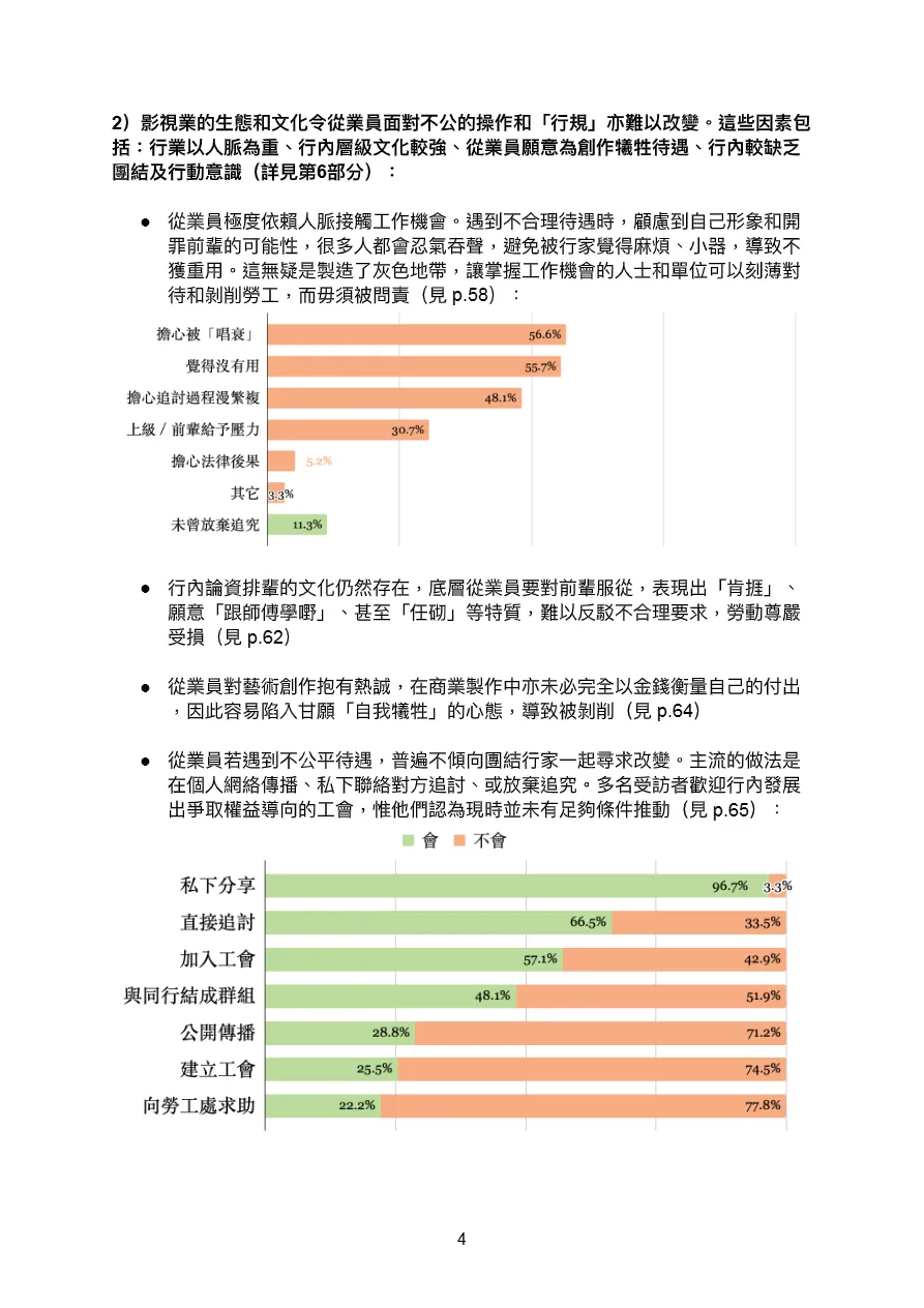 • 行业依赖人脉,新人议价能力极弱:“关系优先”文化导致56.6%从业者因担心被“唱衰”而放弃追讨欠薪;创作热忱被资本利用,形成“自我牺牲”式剥削,加剧待遇恶化。