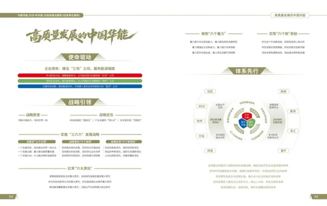 本报告充分吸纳最新政策要求与公司战略,以客观、规范、全面为原则,深入挖掘蕴含在公司"三使命、内化于公司主营业务、与公司发展目标不谋而合且共生共存的ESG理念,探索具有"华能特色"的ESG管理与实践体系,系统梳理、真实披露"华能特色"的ESG信息,展现企业责任与担当,塑造良好的企业公民形象,推动企业实现高质量、可持续发展。