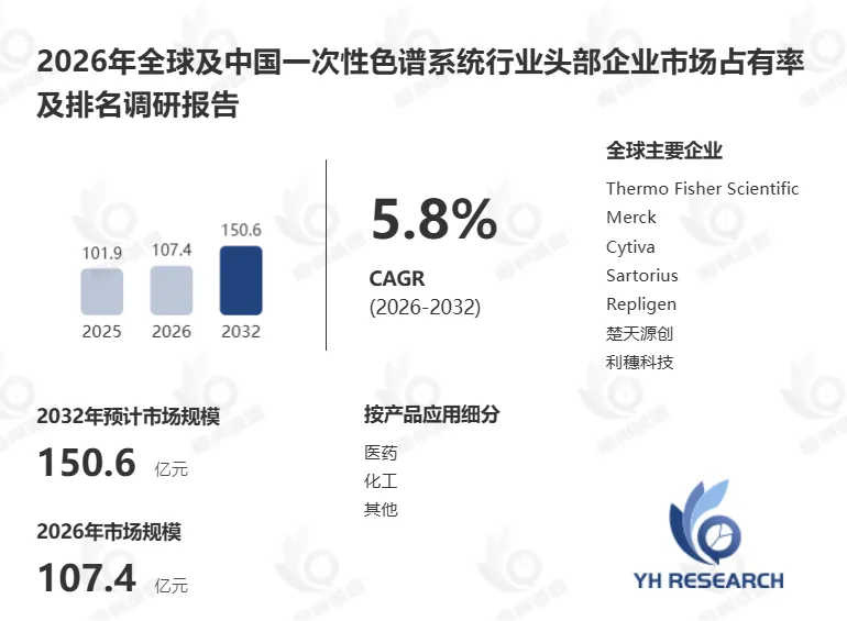 根据YH恒州诚思信息咨询调研统计,2025年全球一次性色谱系统市场规模约102.0亿元,预计未来将持续保持平稳增长的态势,到2032年市场规模将接近150.6亿元,未来六年CAGR为5.8%。
