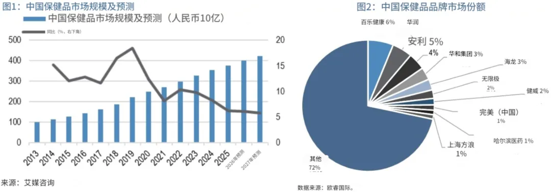 消费者对辅酶Q10、叶黄素和Omega-3等高效成分的需求正在上升,同时,阿胶和枸杞等中药产品也重新受到青睐。据传媒研究预测,2026/2027年中国保健品市场规模预计将增长6%/5%,但品牌市场份额高度分散。麦肯锡的调查显示,年轻一代越来越重视健康,并且比老一代更愿意在健康方面消费。